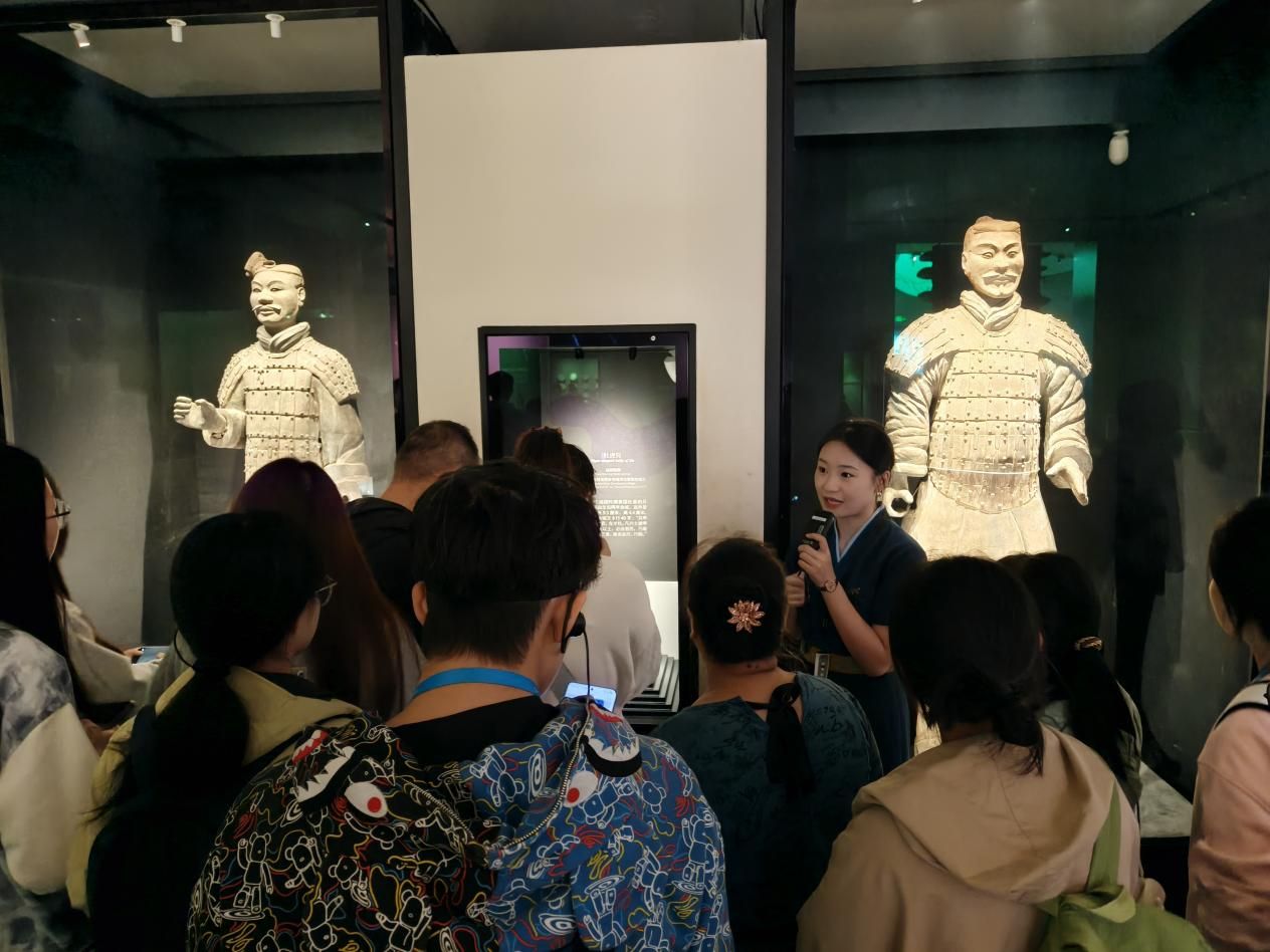 (通讯员 薛孟涵)为深化哲学专业新生研讨课与专业课的教学内容,9月20日上午,在线买世界杯平台哲学系组织2025级中国语言文学类与2023级哲学专业学生,在专业老师的带领下前往陕西历史博物馆秦汉馆开展联合研学活动。本次研学旨在引导大一新生在具象历史中建立相关的哲学专业认知,助力大三学生于复杂史实中提升哲学理论联系实际的能力。