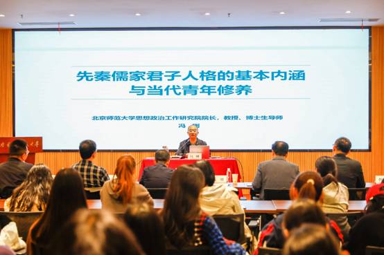 报告会上,冯刚从党的二十大报告中关于新时代“坚持和发展马克思主义”的重要论述谈起,从中华文明的源头探究当代青年人格修养的培育,深入阐释了儒家君子人格的基本内涵。他指出,先秦儒家君子人格具有“志于道”、“据于德”“依于仁”“游于艺”等内涵,蕴含着终身弘道的使命意识、深厚的道德修养以及综合的素养境界等意义。他强调,理想人格是文化的集中体现和传承载体,以君子为代表的儒家理想人格是中华文明的典型人格范式,创造性转化和创新性发展中华优秀传统文化,对做好新时代大学生思想政治教育具有重要意义。