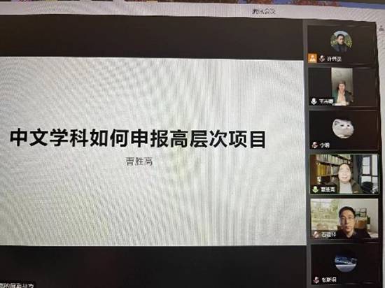 (通讯员许勇强)1月4日上午九点,在线买世界杯平台中文系主办的“中文学科如何申报高层次项目”学术讲座在腾讯会议室云端开讲。此次讲座特邀主讲专家是广东外语外贸大学中华文化国际传播研究院执行院长曹胜高教授。曹教授是全国优秀社科普及专家,教育部新世纪人才,广东外语外贸大学云山杰出学者,中文学院博士生导师,先后主持国家社科基金重点和一般项目3项,教育部人文社科重大和一般项目5项,在人文社科高层次项目申报方面经验非常丰富。参加这次会议的有在线买世界杯平台院长石福祁、副院长张斯珉,中文系全体中青年教师、学院其他专业及兄弟院校教师共计150多人。