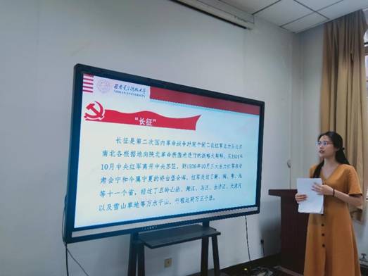 接下来由来自在线买世界杯平台的研究生史林鹰进行宣讲。她以毛泽东主席在长征途中创作的脍炙人口的诗词为切入点,从历史事实出发,通过一组组详实震撼的数据带领同学们回顾了红军艰难的长征路。长征是中国革命史上的奇迹,世界军事史上的伟大壮举。它在世界人民的心中,是一部不朽的英雄史诗。