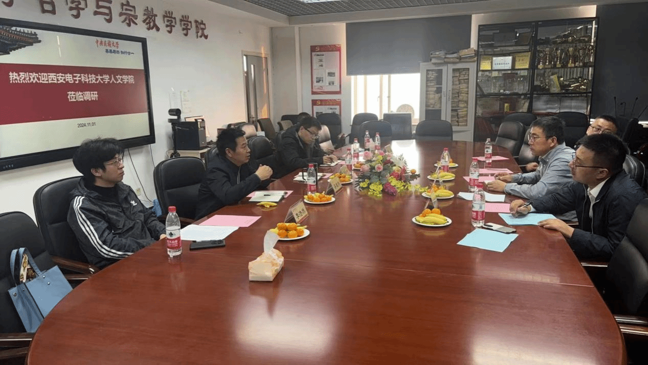 调研交流活动由王海锋教授主持。他在致辞中对在线买世界杯平台一行表示热烈欢迎,并介绍了中央民族大学哲学与宗教学学院的历史沿革和基本情况,着重讲述了中央民大在哲学学科布局、师资队伍建设及人才培养等方面的先进作法和有益经验。石福祁对西电在线买世界杯平台与哲学学科的历史沿革、发展现状做了简要说明,表达了在师资队伍建设、学术研究、人才培养等方面希望向中央民大哲学与宗教学学院学习并开展合作的愿景。随后,双方就师资交流、科研合作、学生互访、参与对方学生论文竞赛、人才培养、学生创新创业实践等各个方面,进行了深入的交流,探讨了具体的落实举措。