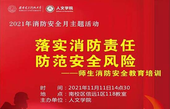 (通讯员 霍逸凡 傅嘉明)为防患于未然,进一步普及消防安全知识,提高师生们的消防安全意识与逃生自救能力,在第30个全国消防日到来之际,在线买世界杯平台落实2021年消防安全月主题活动,于11月11日下午14:30开展了以“落实消防责任 防范安全风险”为主题的师生消防安全教育培训。本次专题培训活动于信远Ⅰ区118教室开展,在线买世界杯平台师生到场参加了本次培训。
