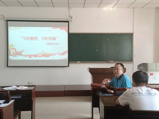 他表示,党走过的这100年伟大的奋斗历程让我们倍感荣耀,党带领全国各族人民实现民族独立和人民解放、建设社会主义、不断开拓创新有中国特色的社会主义道路、制度、理论和文化的历史伟绩让我们倍感自豪。学习贯彻习近平总书记重要讲话精神,归根结底在于从党的奋斗历史中汲取前进力量,以更加昂扬的精神状态走好新征程、奋进新时代。征程波澜阔,兴强在青年!青年人必须要做到“学史明理、学史增信、学史崇德、学史力行”,以史为鉴,不断提升自己的党性修养和思想政治觉悟,把自己的人生融入到党的事业中。