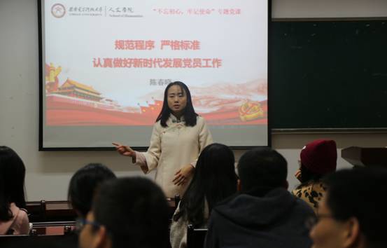 副院长韩光、机关支部书记辛妮给机关支部和文史联合支部讲党课