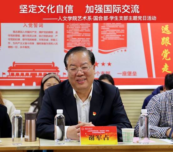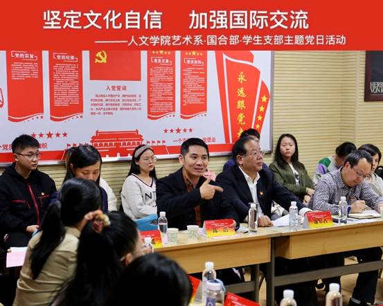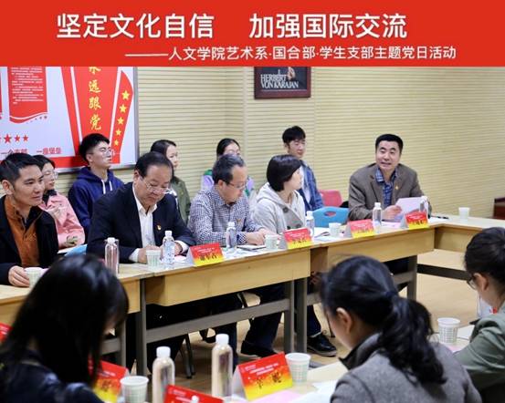 (通讯员 陈春晓 尚百成 陈明哲)10月17日下午,在线买世界杯平台艺术系党支部联合国际合作与交流部、本科生与研究生党支部,在大学生活动中心310教室开展“坚定文化自信,加强国际交流”主题党日活动。校总会计师谢占军、在线买世界杯平台党委书记李文兴、国际合作与交流部部长陈浩、在线买世界杯平台艺术系党支部、国际合作与交流部党支部、本科与研究生党支部党员50余人参加活动。