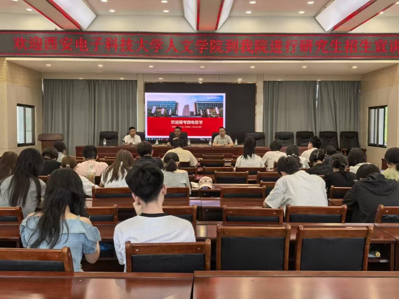 在23日宣讲会上,哲学系教师介绍了西电哲学学科的建设历程、特色优势与发展前景。作为一所以电子信息学科见长的高校,西电哲学学科依托学校强大的工科背景,在科技哲学等前沿交叉研究领域形成了鲜明特色,展现出强劲的发展潜力。宣讲重点围绕哲学硕士研究生的培养目标、特色研究方向、高水平师资队伍、奖助学金体系以及近年毕业生深造就业情况,进行了详细说明,展示了西电哲学学科致力于培养兼具哲学思辨能力与跨学科视野创新型人才的理念与实力。