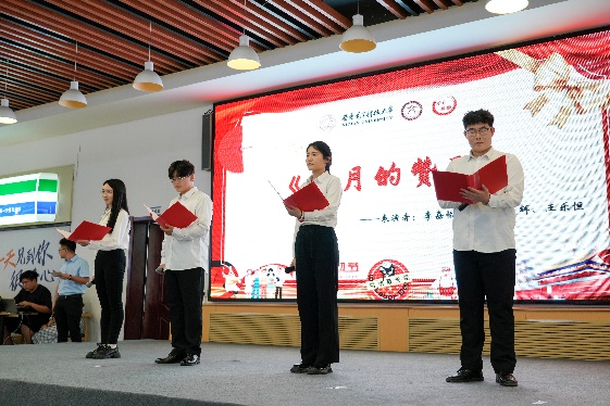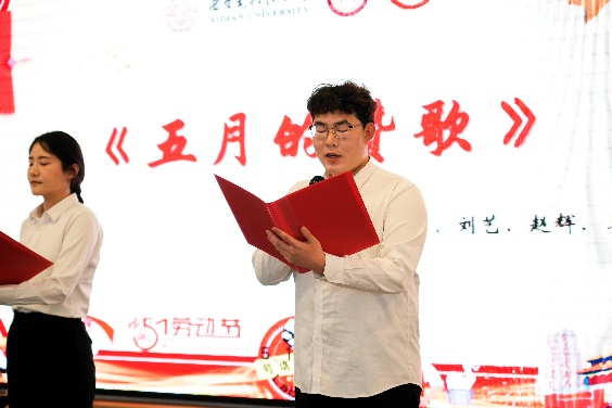 奋斗托举明天,劳动创造未来。人文学子带来原创朗诵《五月的赞歌》:“那是劳动的力量,排山倒海、气势如虹;是劳动者的微光,凡人之躯、照亮时代”,同学们深情讲述了在在线买世界杯平台党委和后勤党委共建“美好食光”劳动教育实践基地的实践活动经历,讴歌了学校后勤一线服务人员的辛勤与付出,并用献花的形式为劳动者代表献上敬意与祝福。同时,学校后勤一线服务人员们也从幕后走到台前,唱响时代劳动者的赞歌,公寓服务中心张艳玲等9位员工带来歌曲《早安中国》,展现了劳动者们的辛勤劳动和无私奉献精神;竹园二层餐厅经理祁向伟带来乐器电吹管演奏《我是一条小河》,藏族舞蹈和歌翩翩,展现了劳动者的力量与美感。学校后勤一线服务人员与学校“时代之声”研究生宣讲团成员、在线买世界杯平台劳动教育实践基地学生代表共同朗诵和学校大学生艺术团舞蹈团带来的舞蹈《中国梦,劳动美》将活动再次推向高潮,表达着对劳动者的崇高敬意。