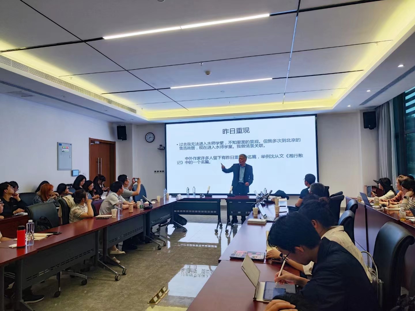 沈卫威教授的讲座视角独到、材料充实;演讲风趣幽默,与在场师生互动热烈,引发一阵阵笑声和掌声。在史料呈现的过程中,沈老师注重结合个人研究、生活经历,呈现出了独特的治学方法与学术观点,言简意赅、发人深思。在讨论环节,沈卫威教授还与在场师生做了互动,对大家提出的问题予以了细致回应。