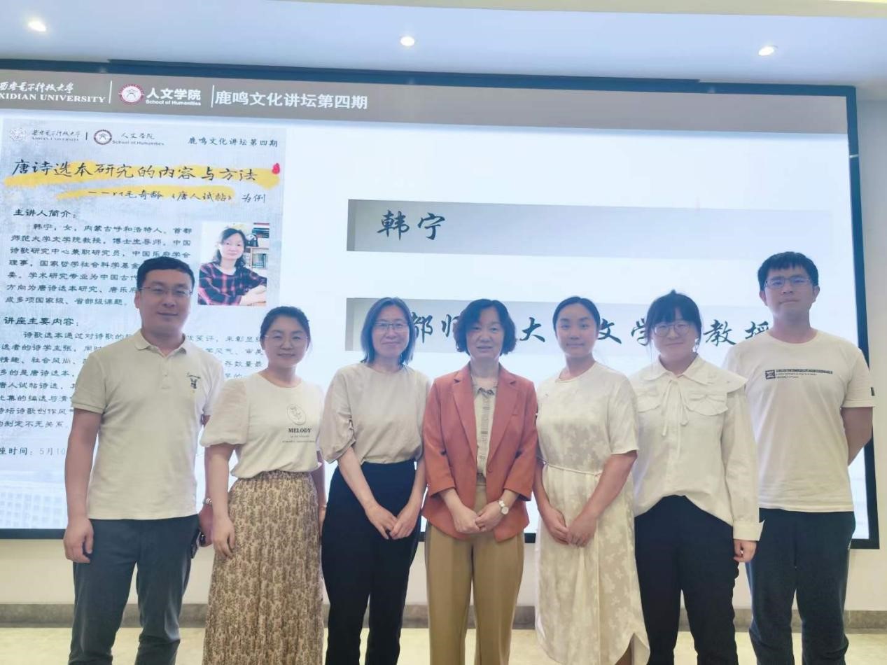 (通讯员 秦国程)5月10日晚7:00,在线买世界杯平台中文系“鹿鸣文化讲坛”第四期在南校区会议中心121室举办。本次活动特邀首都师范大学文学院教授、博士生导师韩宁主讲,题目为“唐诗选本研究的内容与方法——以毛奇龄《唐人试帖》为例”。活动由中文系教授王志清主持,中文系主任朱佳宁及青年教师李东若、刘茸茸、连晨炜、王璐和四十余位在读本、硕学生聆听并参与了讨论。