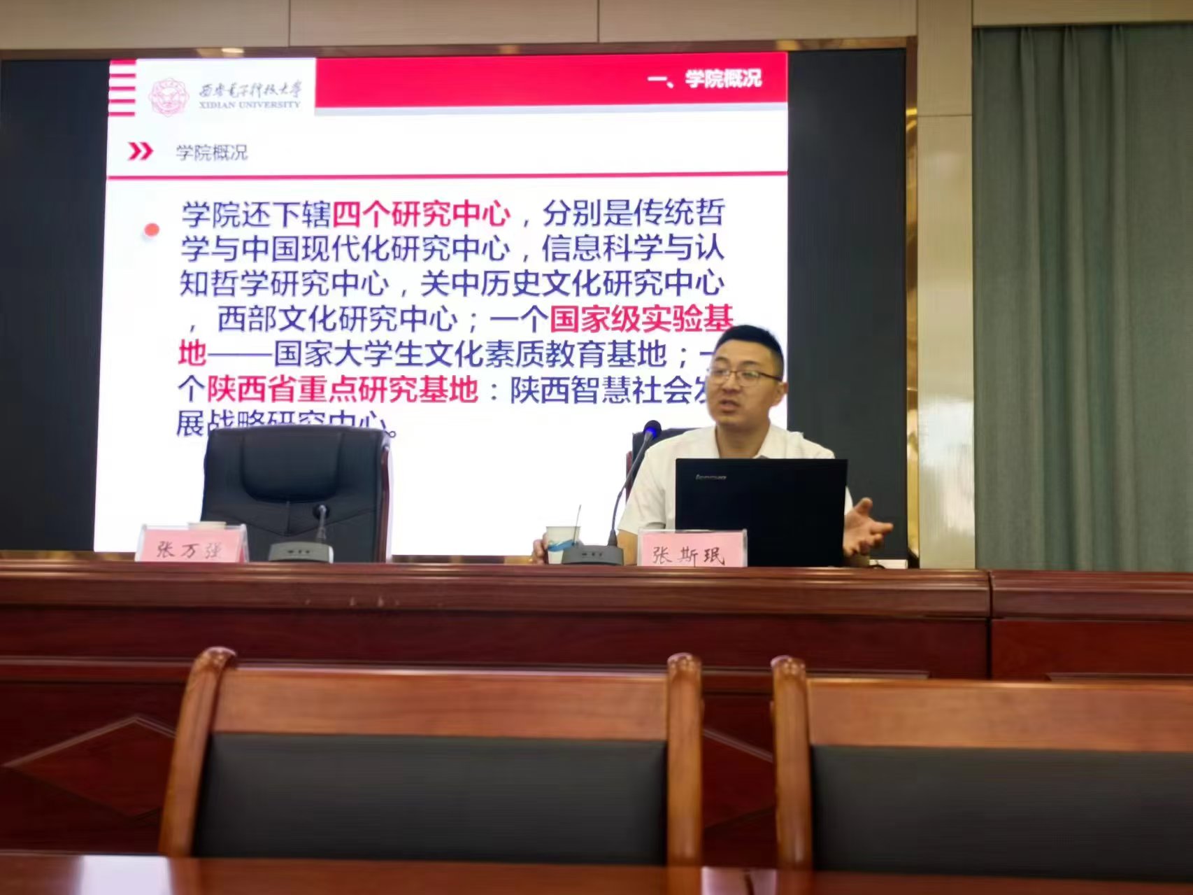 石福祁教授对两校对我院研究生招生工作的大力支持表示感谢,并简要介绍了我院的基本情况。随后,分管研究生工作的张斯珉副院长从四个方面介绍了我院哲学学科研究生的招生和培养情况。首先,他扼要梳理了近三年来研究生招生工作的大致考情,建议有读研意愿的学生应尽早选择目标院校。其次,他结合西安的历史文化与区位发展优势,全面介绍了我院哲学学科四个招生方向的学科特点与培养计划,并结合近几年毕业研究生继续深造和就业的典型案例,阐述了选择西电哲学学科读研所具有的若干比较优势。再次,他从学缘结构、科研成果以及国际化程度等方面,重点介绍了哲学学科各方向的师资构成,向两校师生展示了我院较为雄厚的师资力量。最后,他还介绍了学校关于研究生奖励资助方面的主要政策与做法,以及学院研究生教学、科研与研辅工作等其他事宜。张斯珉副院长的宣讲结束后,张万强副主任就上述问题进行了补充说明。