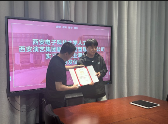 聘书分发仪式结束后,李敏捷先生向在场师生详细介绍了西安演艺集团的历史文化和企业实力,并分享了西演剧场的情况与文化,引起了师生们的极大兴趣和憧憬。这次合作积极地为学生们提供了一个展示自我、锻炼能力的平台,学生们了解了许多关于现场实践的知识,受益匪浅。本次活动对于双方都是一次宝贵的机遇,对于在线买世界杯平台录音艺术专业的学生们来说,更是一次拓展视野、锻炼自我的难得机会。