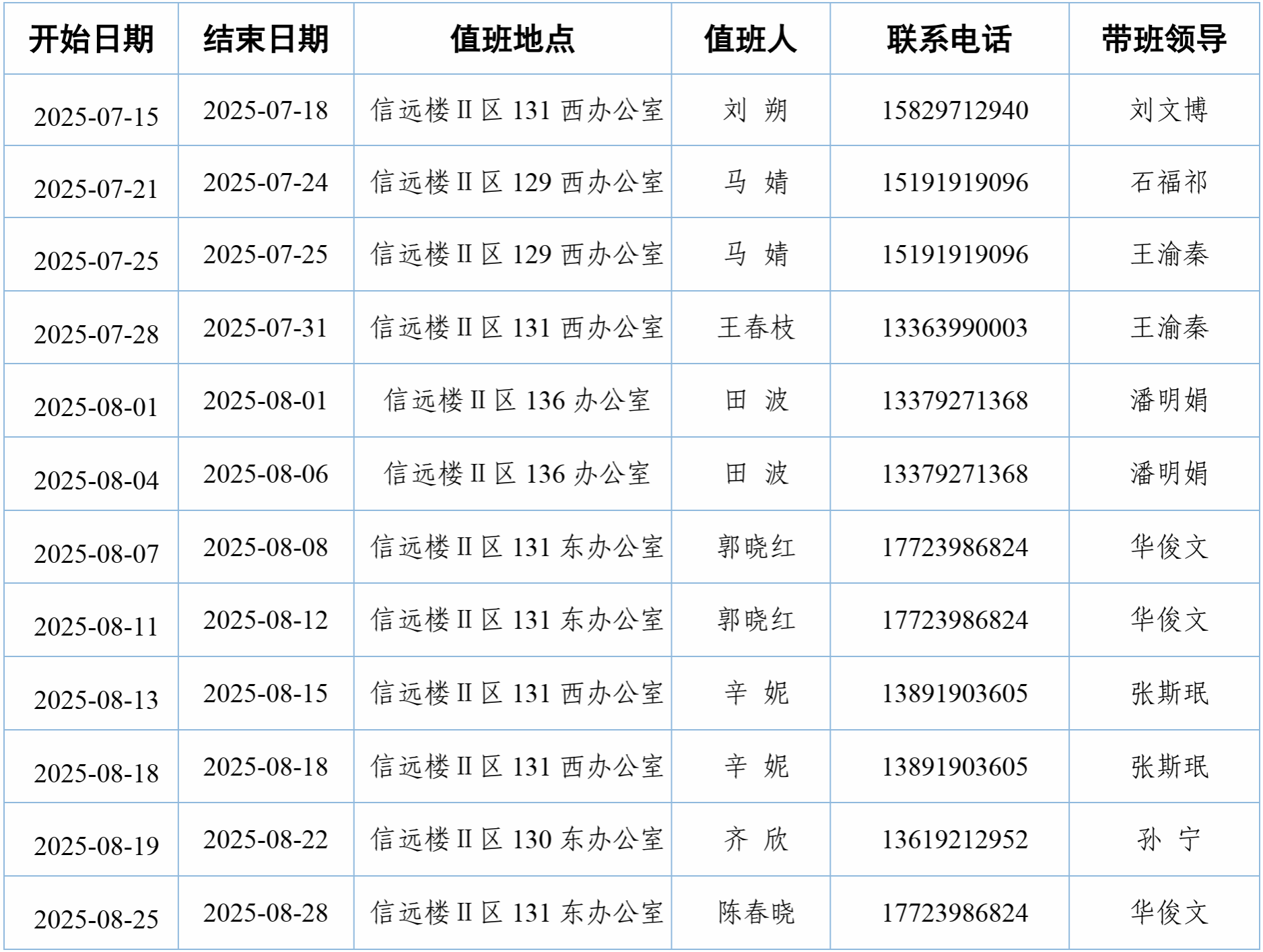 按照学校《在线买世界杯平台关于2025年暑假放假安排的通知》要求,现将学院2025年暑假轮休值班安排如下: