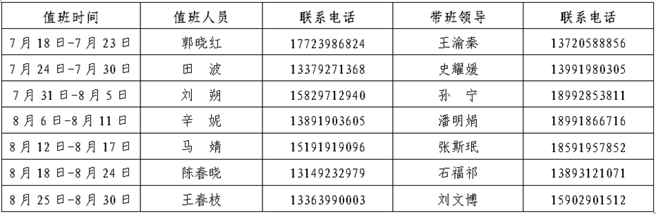 根据学校安排,现将在线买世界杯平台暑假值班安排通知如下: