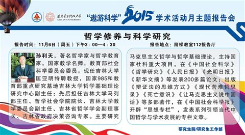 主讲人简介:孙利天,著名哲学家与哲学教育家,国家教学名师,教育部社会科学委员会委员。现任吉林大学匡亚明特聘教授,国家985和教育部重点研究基地吉林大学哲学基础理论研究中心副主任;先后担任吉林大学马列部主任、哲学社会学院院长、吉林大学教学委员会副主任、吉林省哲学学会副理事长、吉林省政府决策咨询专家。主要研究马克思主义哲学与哲学基础理论,主持国家社科重大项目,在《中国社会科学》《哲学研究》《人民日报》《光明日报》《新华文摘》等发表200多篇论文;出版《辩证法的思维方式》《现代苦难哲思录》《死亡意识》《让马克思主义说中国话》等多部著作,在《中国社会科学报》开辟“思想专栏”,发表系列引领当代中国哲学与学术发展的专栏文章。