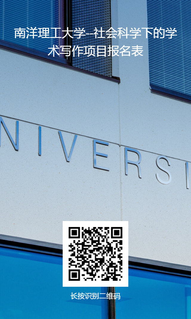 为推动我院学科发展,完善人才培养体系,服务学校“双一流”事业发展,进一步促进学生国际交流,学院将组织开展“新加坡南洋理工大学社会科学下的学术论文写作项目”报名选拔工作。