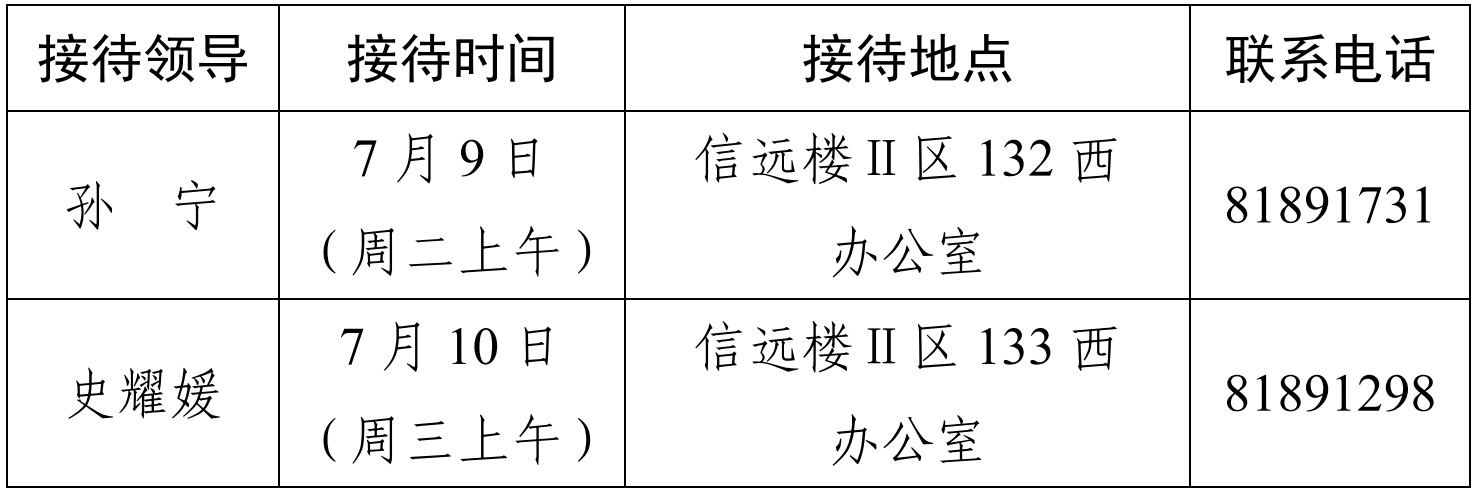 根据《在线买世界杯平台领导班子接待日制度》精神,每周安排两位学院领导接待师生。现将7月8日-12日学院领导接待安排公布如下: