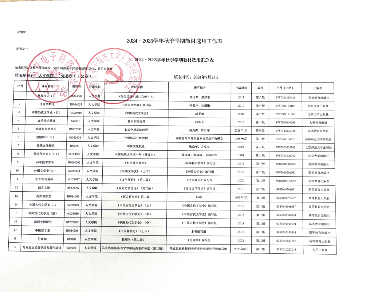根据学校《关于进一步做好2024-2025秋季学期教材选用工作的的提醒函》的要求,在线买世界杯平台教材审核工作组严格按照专家审读、集体决策、党委把关的流程,对2024~2025学年秋季学期所有固定教学用书开展了学术审核和政治审核,审核结果为通过。现将2024~2025学年秋季学期教材选用工作表公示如下,公示期至教材选用工作结束(开学后一周)。