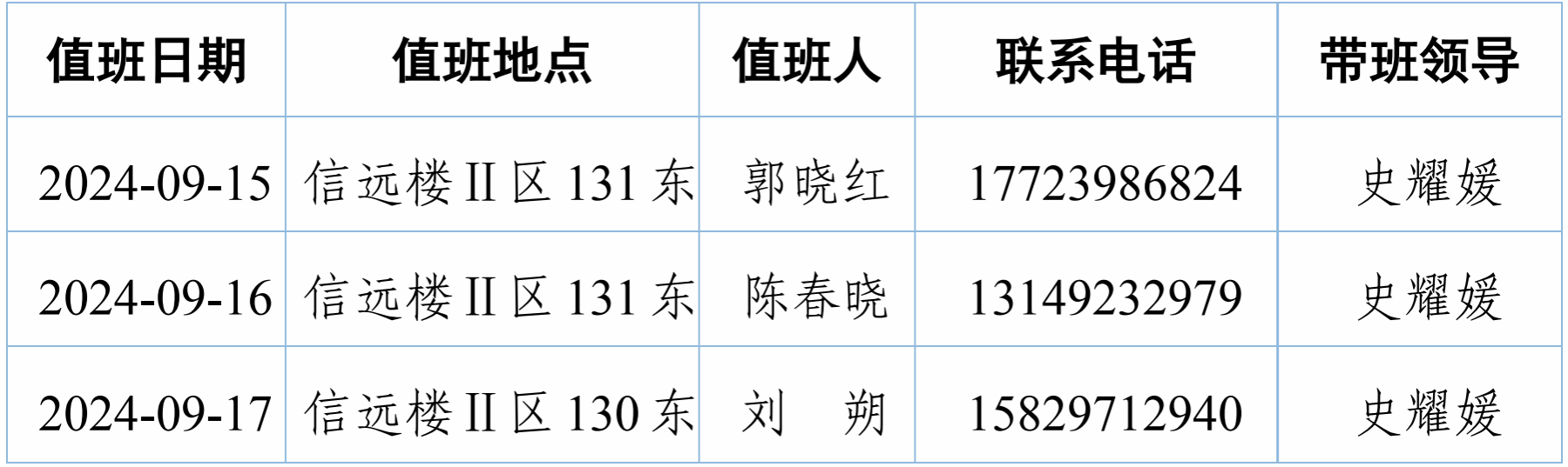 按照学校《关于2024年中秋节放假时间安排的通知》要求,现将学院2024年中秋节假期值班安排如下:
