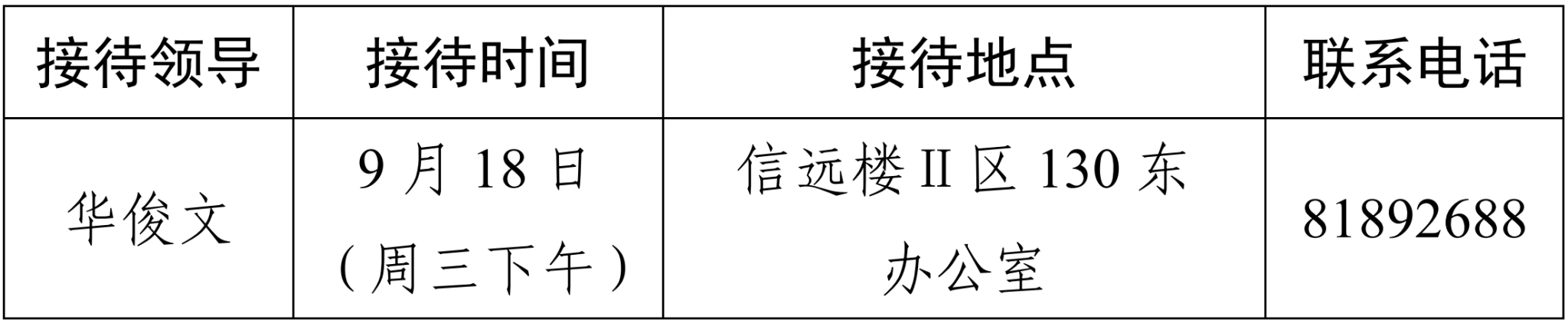 根据《在线买世界杯平台领导班子接待日制度》精神,每周安排两位学院领导接待师生。现将9月18日-20日学院领导接待安排公布如下: