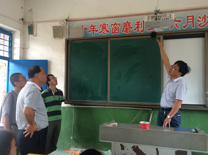 三合学校校长陈发友向吴建新一行介绍了学校的基本情况,该校为9年制学校,目前在校生520名,其中440名学生住校。陈发友介绍该学校目前软硬件设备均需大力改善,学校仅有一套电教设备,教室需要配备电子白板软、电脑等设施,住校学生住宿条件也有待改善。学校师资质量急需提升,希望学院能联系对学校教师进修培训。也希望能对学生进行科技知识普及,开阔学生视野。