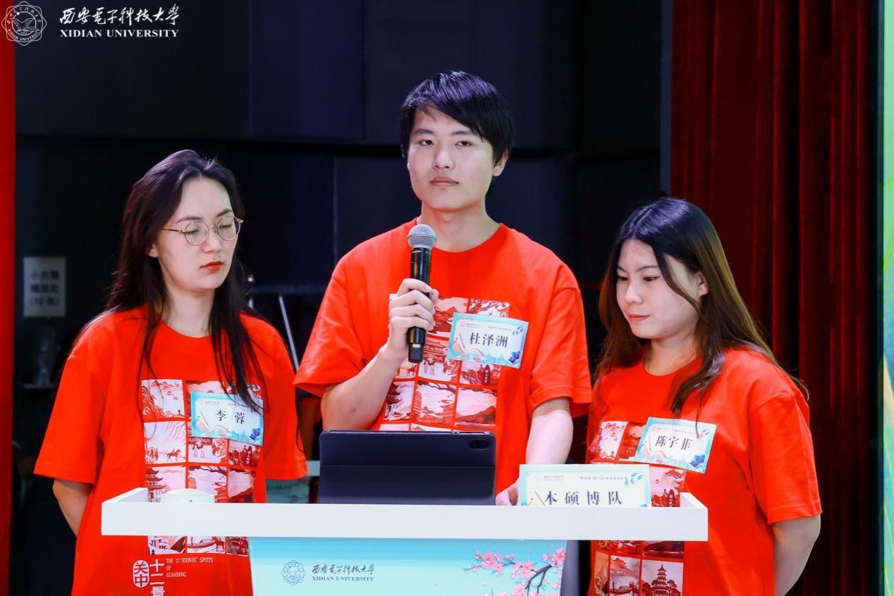 为丰富和活跃大赛氛围,大赛特安排暖场环节。“时代之声”研究生宣讲团以“AI视频+真人现场”的创新形式诵读《数智华彩·长安胜迹吟》原创作品,展示数字赋能下千年遗迹的生机与活力;西安高新区第八初级中学合唱团表演的合唱《声声慢》余音绕梁;西安市高新区第五初级中学舞蹈团表演的舞蹈《十八焕珠》翩跹灵动,共同烘托出决赛现场的诗韵氛围。除此之外,活动特别邀请到留学生校友天使进行现场互动,并表演吟诵李白的《将进酒》,创新性融入抑扬顿挫的陕西方言,全场观众在这跨越千年的激昂韵律之中,感受诗仙的洒脱不羁以及中华传统文化的深厚韵味。