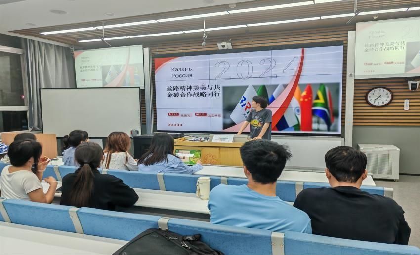 宣讲团成员陈雨飞以“丝路精神”为主题,结合金砖国家领导人第十六次会晤《喀山宣言》,深入剖析丝路精神在国际合作中的实践逻辑。他以WTO上诉机构瘫痪、国际货币基金组织份额失衡等案例,揭示现行国际治理体系的结构性矛盾,指出金砖扩员是“全球南方”争取话语权的标志性事件。宣讲中,陈雨飞重点解读了《喀山宣言》关于债务治理、本币交易系统、新工业革命伙伴关系等务实举措,强调金砖正从“经济合作组织”升级为“全球治理方案提供者”。他以中阿合作论坛的持续推进为例,展现了中国如何通过丝路精神的践行,在复杂国际局势中构建和平合作的战略支点,呼应“人类命运共同体”理念的世界意义。