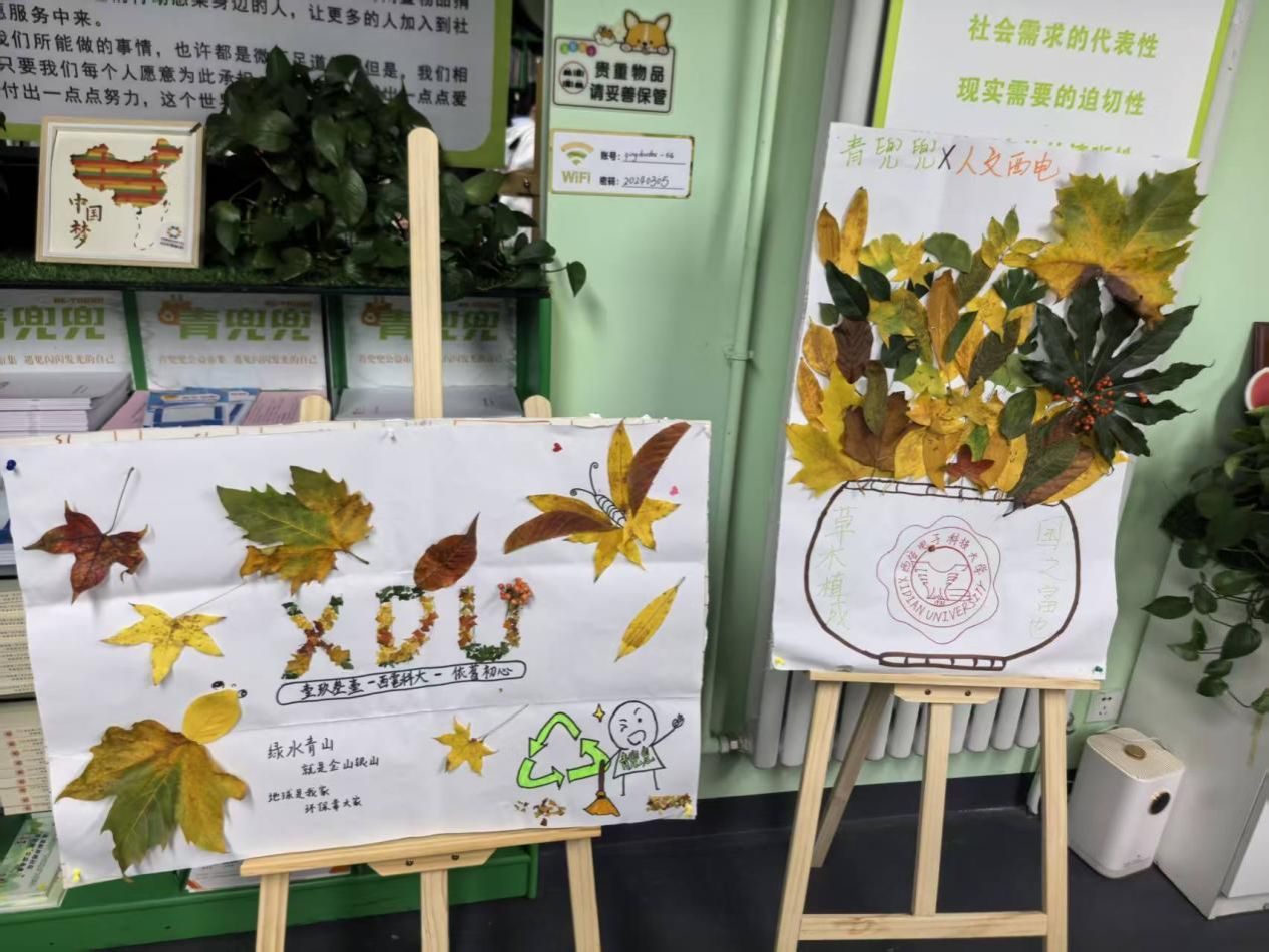 活动中,同学们收集落叶并制作环保主题宣传画,通过实物与艺术结合的方式传递绿色理念,增强社区居民的环保意识。大家将落叶转化为画面素材,绘就“珍惜自然”“守护家园”等主题海报,以实际行动宣传环境保护。