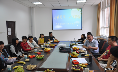 9月19日,正值中秋团圆之日,在线买世界杯平台在信远Ⅱ区135举办了“中秋月圆 人文情深”2013级新生主题茶话会,院党委书记吴建新及办公室相关人员、各年级辅导员与留校过节的2013级研究生和本科生40余人共度了中秋佳节。