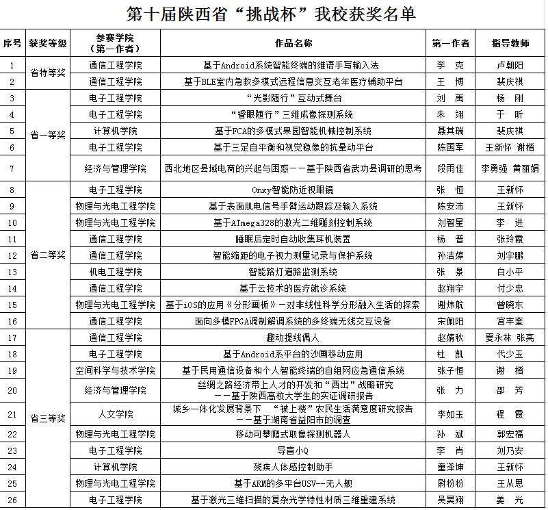 (通讯员 李如玉)近日,第十届“挑战杯”陕西省大学生课外学术科技作品竞赛评审结果揭晓,由我院程霞老师指导、录音艺术专业大二本科生李如玉作为第一作者完成的作品《城乡一体化发展背景下“被上楼”农民生活满意度研究报告——基于湖南省益阳市的调查》获得省级三等奖,取得了近三年在线买世界杯平台的最好成绩。