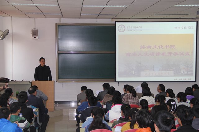 终南文化书院执行院长、学生处处长任小龙做开学致辞,他对筹办终南文化书院的各位导师和参加书院的学员们表示感谢。终南文化书院在学校创新人才培养模式、本科教学教育改革的背景下诞生,致力于文化育人工作,任小龙还以我校77级毕业生当中培养了8位两院院士为例,说明我校在人才培养质量注重的在学好专业知识、提升实践能力的同时,拓展知识范围,提升人文素养。面对新的形势要求,他对终南文化书院首届学院提出了三点要求。一是通过书院学习认识到自身的责任,二是丰富自己的知识结构,三是提升个人的综合素质。
