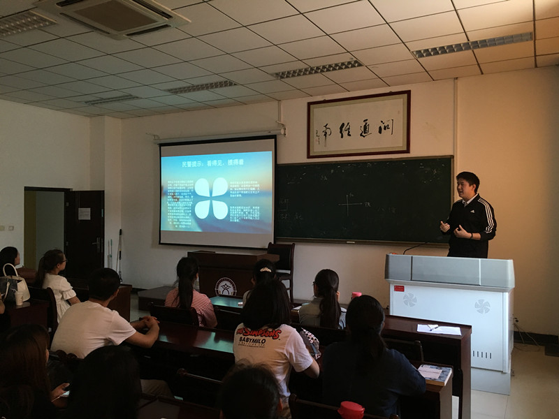 首先倪东讲述了最近同学们外出时财物频繁失窃的情况,提醒同学们必须加强防范意识,尽量避免外出财物被窃。随后,被盗学生邢家伟根据对报案后反扒民警的详细咨询,向同学们介绍了公交车盗窃的四种常见形式,即上下车时趁乱偷窃、在座位上用刀片割窃、对目标站立贴靠进行扒窃、用工具较远偷窃四种方式;随后邢家伟为同学们介绍上述几种偷窃方式应当如何应对,以防止被窃,邢家伟总结为六个字“看得见摸得着”,在车站等候时尽量不要暴露财物及手机,坐车时一手抓栏杆一手握财物等方法十分有效;最后,邢家伟以亲身经历为大家介绍了处理流程,切忌与窃贼发生正面冲突,若第一时间察觉应记住窃贼身体特征并及时报警。