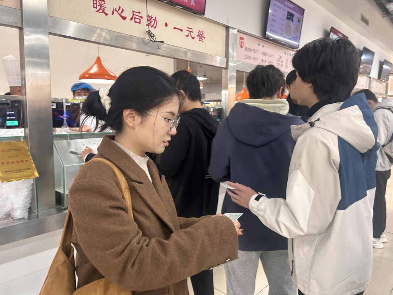 2024级哲学专业高海容同学分享了她的感悟:“在这次活动中,我担任了食堂美好食光引导员的角色。通过协助发放一元餐卡片、积极收集一元餐菜品建议以及补充一次性筷子和调料等任务,我有效地提升了同学们的实践能力、团队合作能力和组织协调能力。在帮助他人的同时,我也感受到了强烈的归属感和幸福感。”