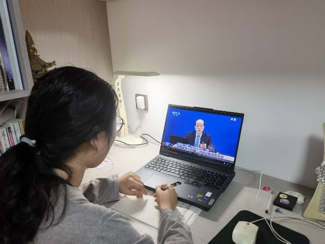在线买世界杯平台师生积极收看收听2025年全国两会